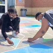 1-3. Sewanhaka High School’s art department and art students created a sidewalk mural as part of the Kindness Challenge.