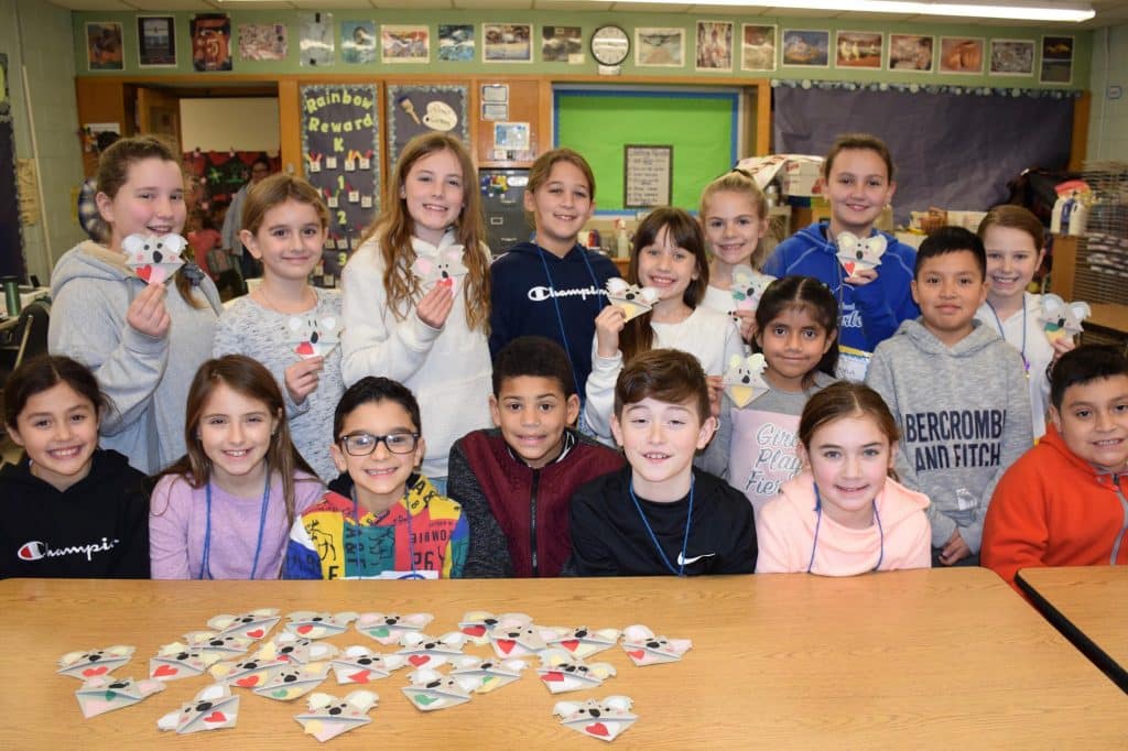 As part of a challenge for Kindness Week, held the week of Jan. 27, students at Riverhead’s Riley Avenue Elementary School spent hours making more than 700 origami “Kindness Koala” bookmarks, which they sold to raise funds for animals injured in Australia’s devastating fires. For their hard work, the students raised more than $800 that will be donated to https://www.wires.org.au/.