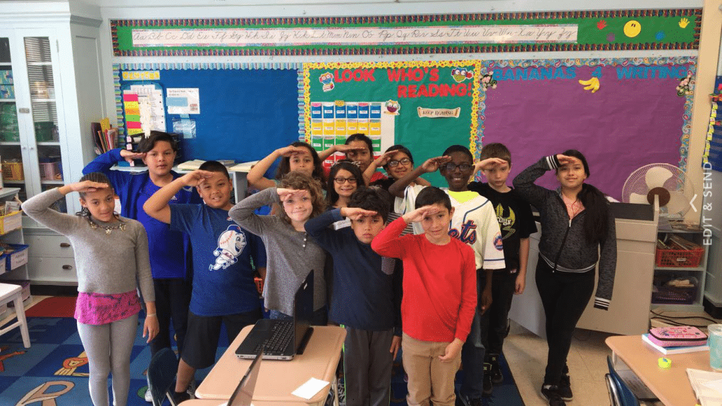 Photo Caption: Landing fourth-graders recently wrote letters to WWII Veteran Vincent Long.