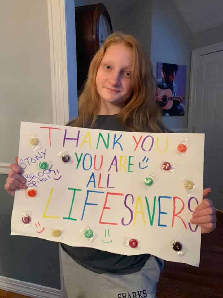 Giving back to our community. Sophia and sister, Ella made cheer bags for Stony Brook patients, who are unable to have visitors when they need them most. Also donated supplies and goodies to Stony Brook staff! Thanks to those who pitched in!
