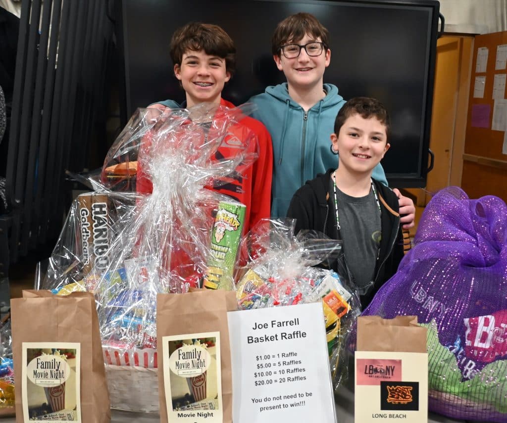 - LBMS students overseeing the raffle table Thomas Egan, Elliot Biern and Ethan Engelson