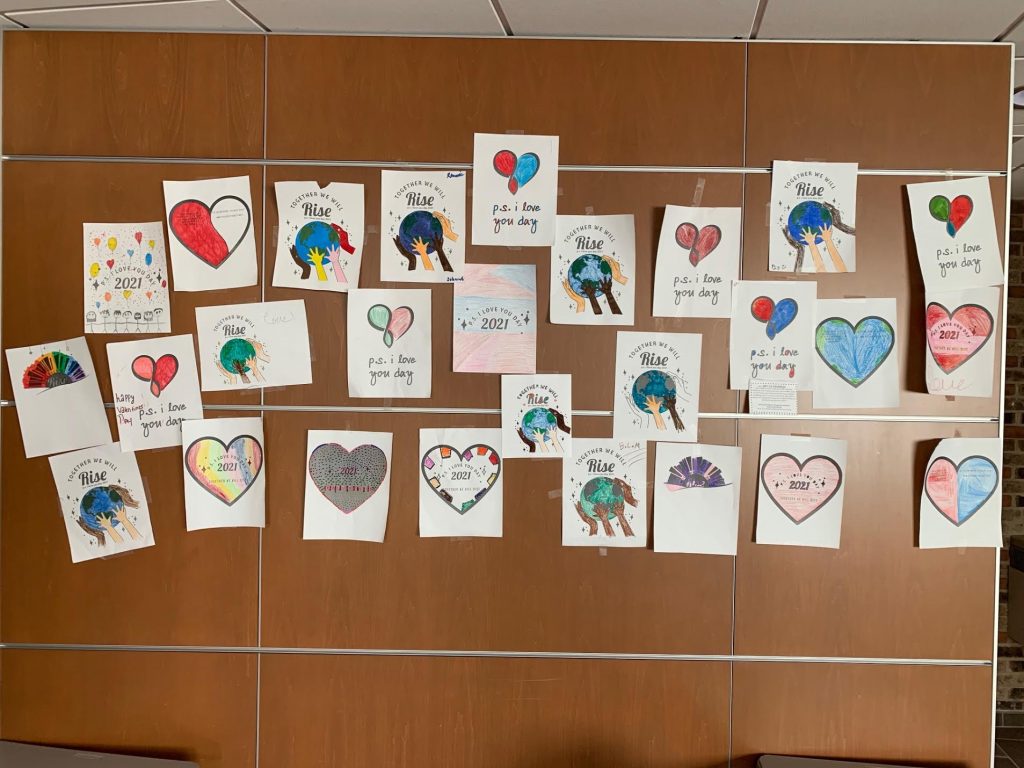 At Long Beach High School, the Student Organization coordinated P.S. I Love You Day efforts on Feb. 11 and 12. Members arrived early in the morning and decorated the building, placed notes on every desk and filled the commons area with displays of positive affirmations. Additionally, carnations were available for students to purchase for others.