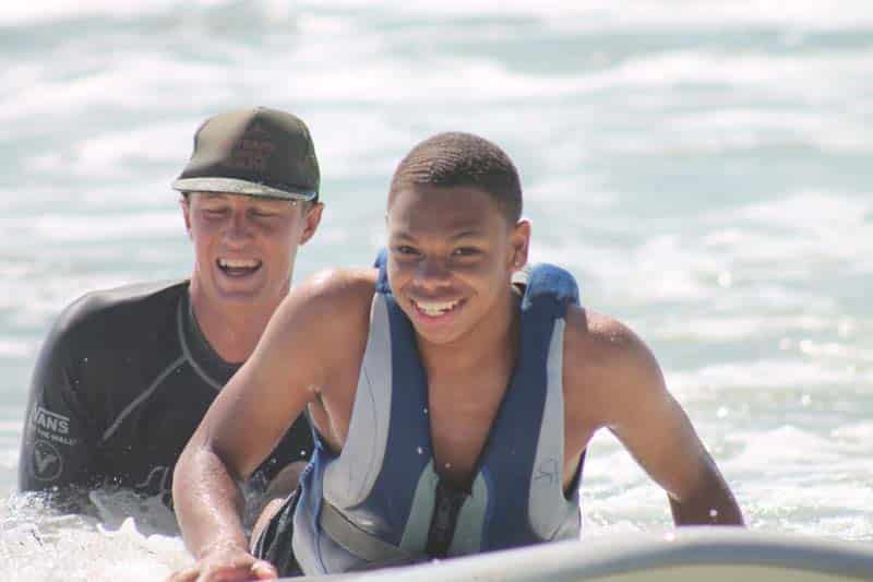 One by one, students were fitted for life jackets and accompanied by instructors as they made their way out into the water on long boards. They each embarked upon their own unique surfing adventures, in which they took on new challenges and gained self-confidence while riding waves back to the shore.