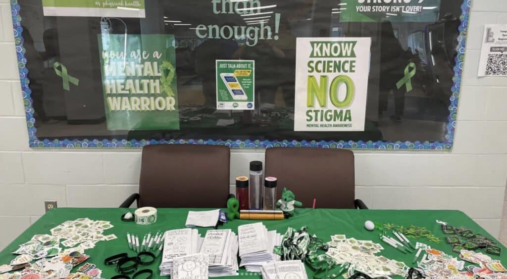 Throughout the month, the school community came together to raise awareness and promote positive mental health through a variety of engaging activities. Students and staff proudly wore green, the official color of mental health awareness, and participated in daily affirmations and wellness-based classroom activities. A mental health resource table was also made available, offering valuable information and support materials to anyone interested in learning more.