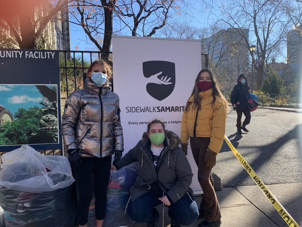 Manhasset Secondary School students traveled to New York City on Dec. 6 to put coats directly in the hands of the city’s homeless population. Students joined the organization Sidewalk Samaritan to give away more than 200 coats that were collected during a drive at the school.