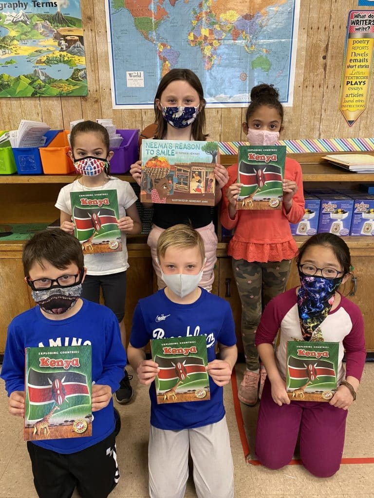 5) Third graders (top row from left) Avery Boccio, Emilie Sollin, Valentina Dejesus and (bottom row from left) Andrew Berke, Owen Fischer and Rylie Yang learned all about Kenya.