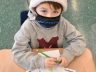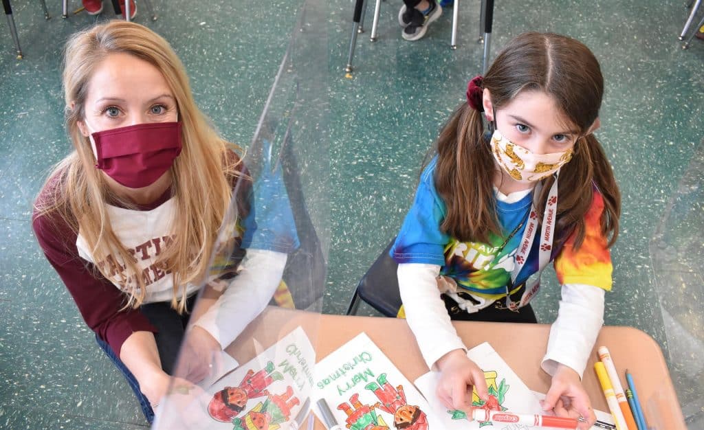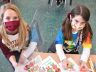 2: First grade teacher Mary Carrea, who coordinated the project, checked in on Summer Ryan, who made several cards for seniors.