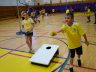 2: Students played beach games during physical education classes, including Tyler Caruso who tried his hand at cornhole, to rally support for donations for the American Childhood Cancer Organization.