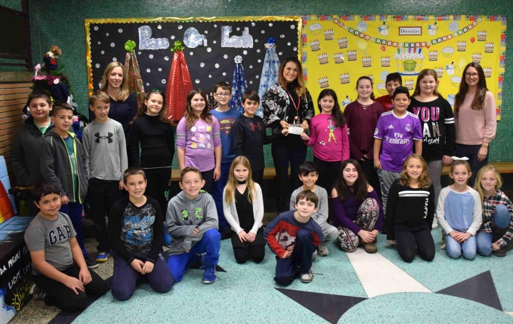 Photo Caption: Members of Student Council and the SADD club at McKenna Elementary School presented a $262 check to the American Red Cross, represented by Vanessa Goicochea (center).