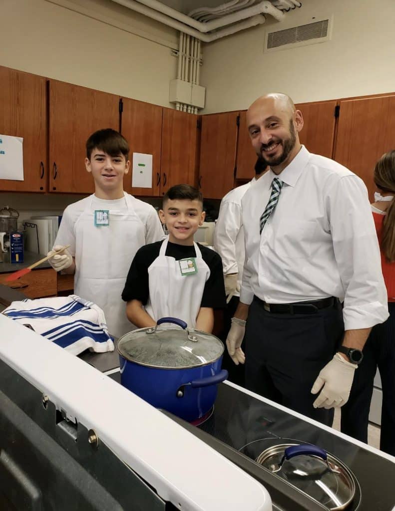 The idea came from one of the school’s students, Eric Chavez, who made an appointment with Principal Joanne Giordano to share his vision of charity and generosity. His class worked alongside school administrators – including Joe Castoro, Marybeth Corr, Ms. Giordano and Dean Jeff Shade – who helped guide them through the process of making the holiday dishes. Christy Roxo, the school’s family and consumer science teacher, graciously shared her kitchens with the volunteers and teachers, including Jess Volpe, Susan Cove and Mary Catelli.