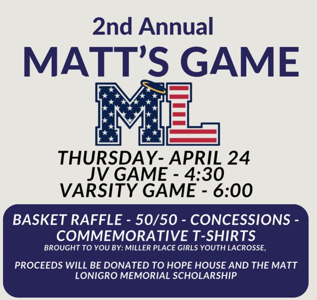 This season, the Miller Place Girls Lacrosse program will once again come together with the community to honor the life and legacy of Matt LoNigro—a cherished community member, former head of the Youth Lacrosse program (Boys & Girls), and past President of the Miller Place Athletic Booster Club.