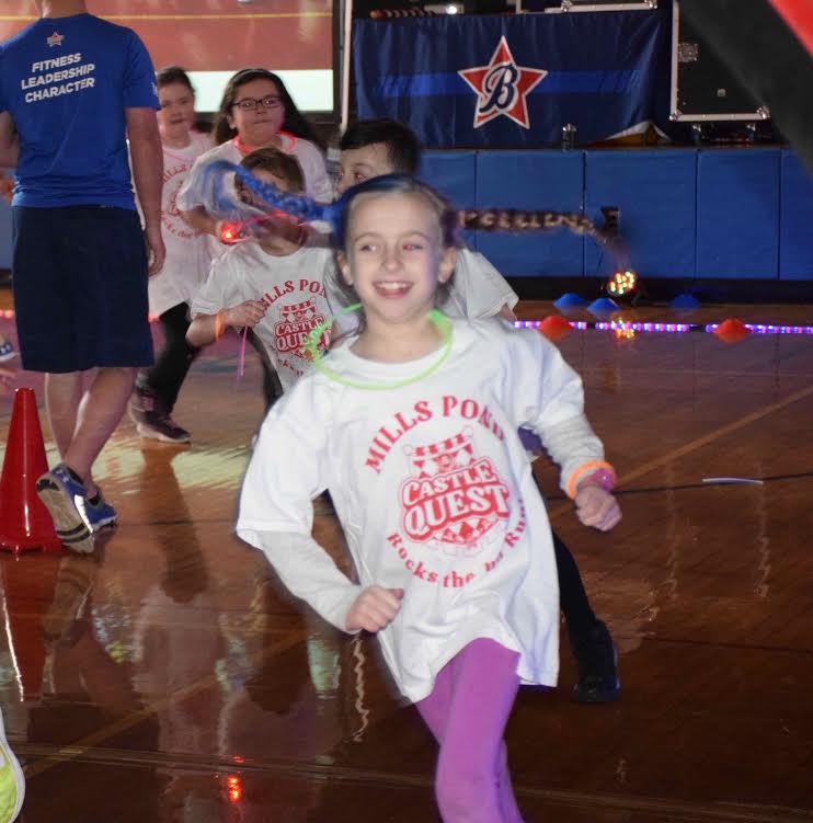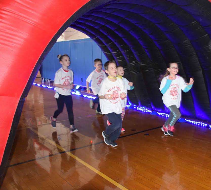 To raise money for its Parent-Teacher Association, get active and show their school spirit, Mills Pond Elementary School in the Smithtown Central School District held a Boosterthon Fun Run in the gymnasium on March 9.