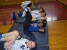 The gymnasium was set up in different stations, and students rotated throughout, doing sit-ups, planks, push-ups, relay races and jumping jacks in small groups.