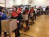 We packed Thanksgiving food baskets for families. We took boxes and went from station to station filling the boxes with donated food items.