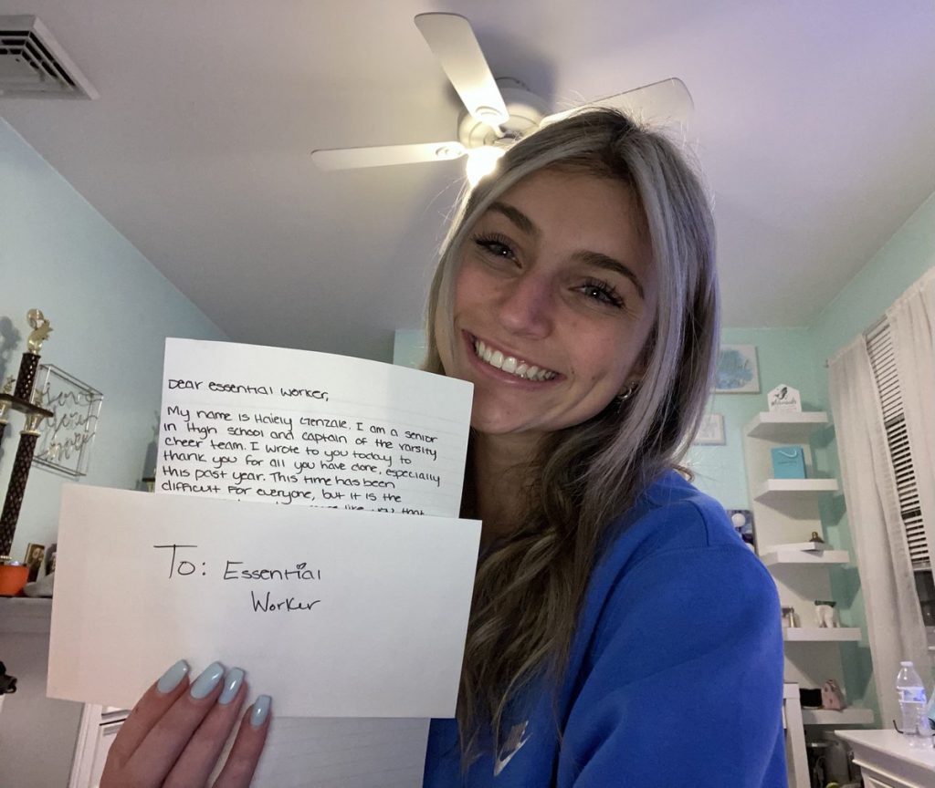 Our league office mentioned the opportunity to participate in Orange Cares and our coaches and athletes ran with it. The initiative took on a life of it’s own and we couldn’t be more proud. We had 15 different teams participate and 78 students wrote letters for first responders, health care workers, and nursing home residents.