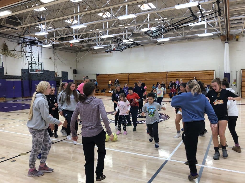The Girls Varsity Soccer team joined the MW elementary school Special Olympics team for practice this past Saturday as they worked on soccer skills (and dance moves). It was a rewarding day for all and the team will be returning soon for more fun. The Olympians and Varsity athletes certainly made lasting connections.