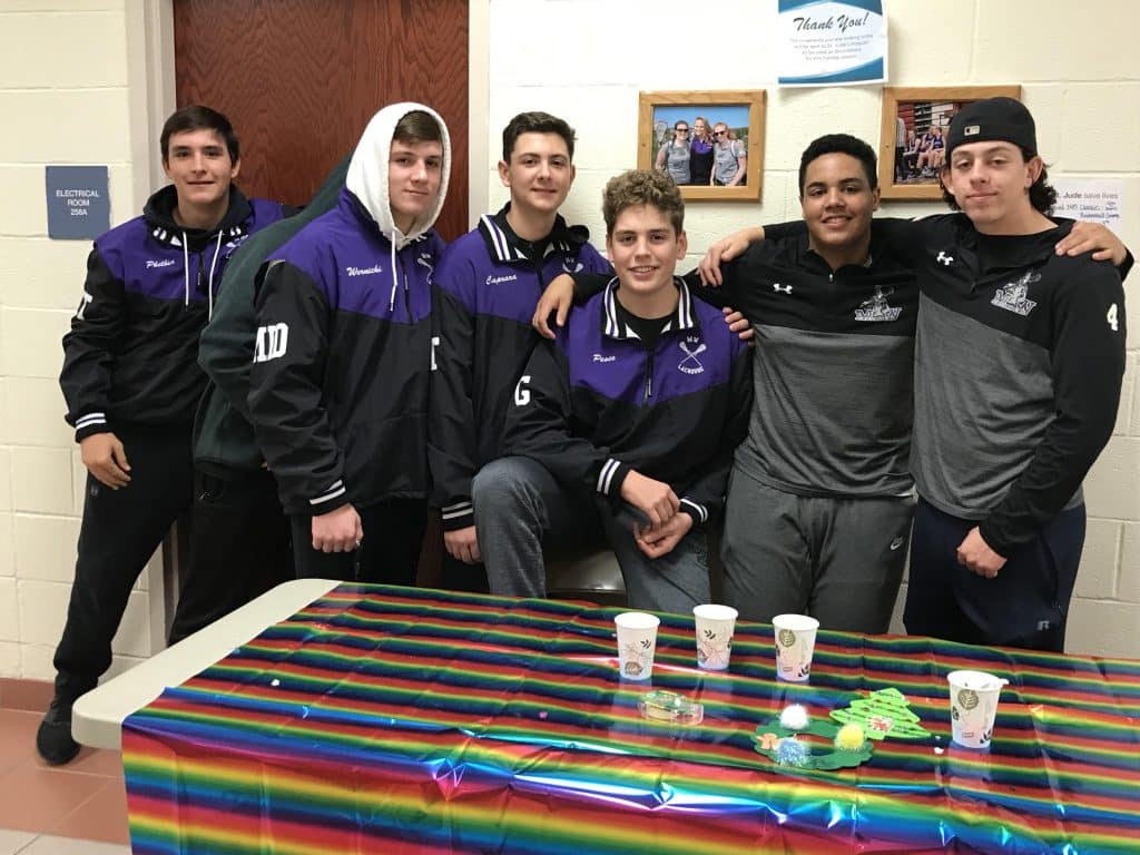 On November 9th the Monroe-Woodbury Varsity Lacrosse team helped out at the St. Jude’s basketball fundraiser. They helped kids make Christmas ornaments for St Jude’s. They also helped tape Mr. Kravatz to the wall. As part of the fundraiser, each family bought a piece of tape to strap him to the wall. Lastly they helped out with half time festivities. It was great night and it raised over $4,000 for St. Jude’s children’s hospital!