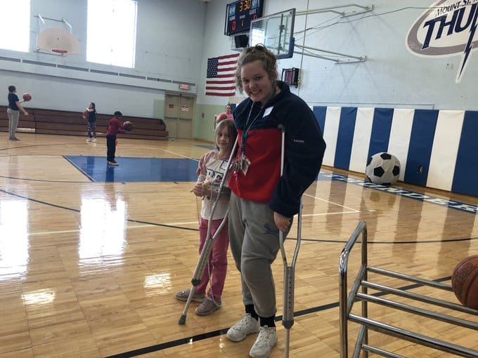 There were approximately 22 athletes. They went into a group in the classroom and helped them with school and homework. The next day we picked up students close 20 of them and did sport at the School. They had a great time.