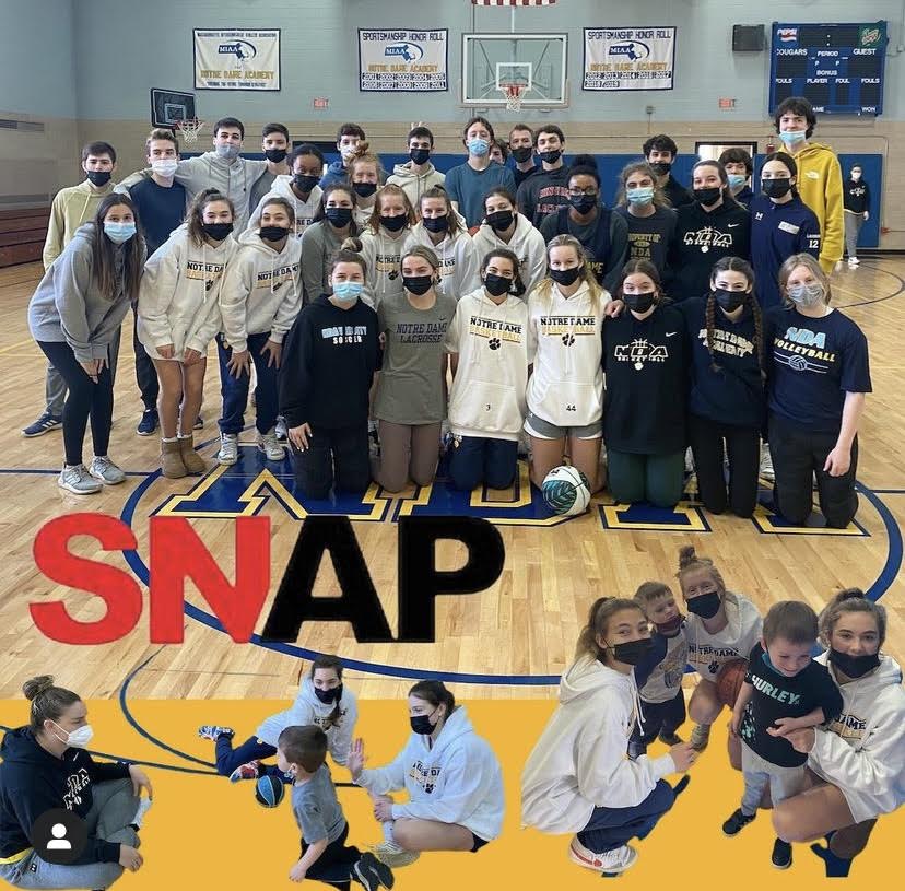 The NDA basketball program teams up with the Hingham High School boys program annually to participate in the SNAP program. NDA hosts and invites participants to sign-up through SNAP, Special Needs Athletic Partnership. The basketball players mentor the participants for one hour on Saturdays during the winter basketball season. They work on drills, have scrimmages, and just focus on having a fun time! We are so happy to have the program back after not being able to offer it last year due to COVID. The NDA program has been offering SNAP for about 8 years