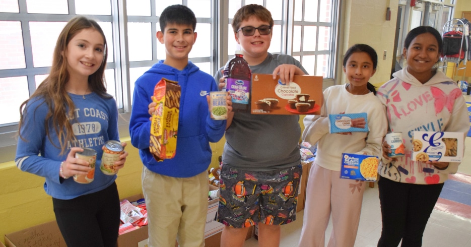 The generosity of Newbridge Road School students will benefit local families for Thanksgiving. The student council partnered with the PTA for a food drive, which resulted in the donation of hundreds of nonperishable goods.