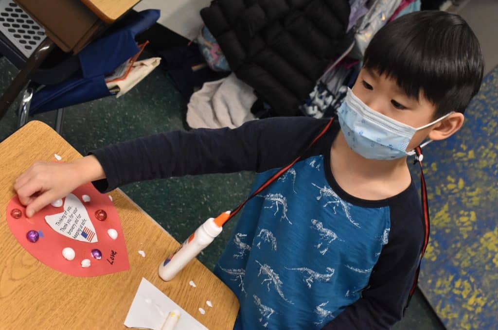 1: Students at John G. Dinkelmeyer Elementary School participated in the Valentines for Veterans program.