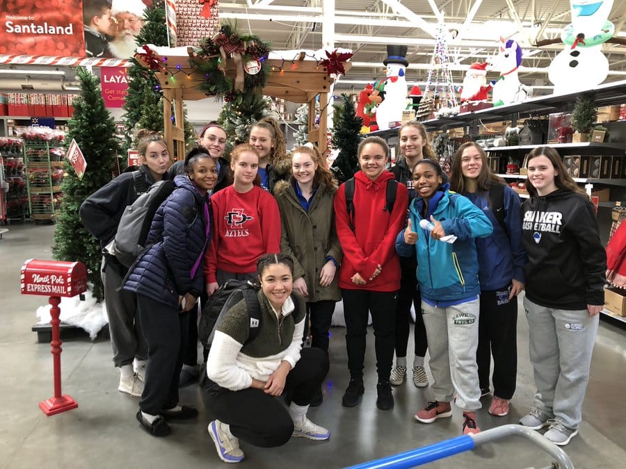 The coach will call the family and get sizes, items in need etc. The team gets together to shop and the girls will go out and pick items out that they think the family members will like. Each team usually spends about 1.5 -2 hours shopping and picking things out.