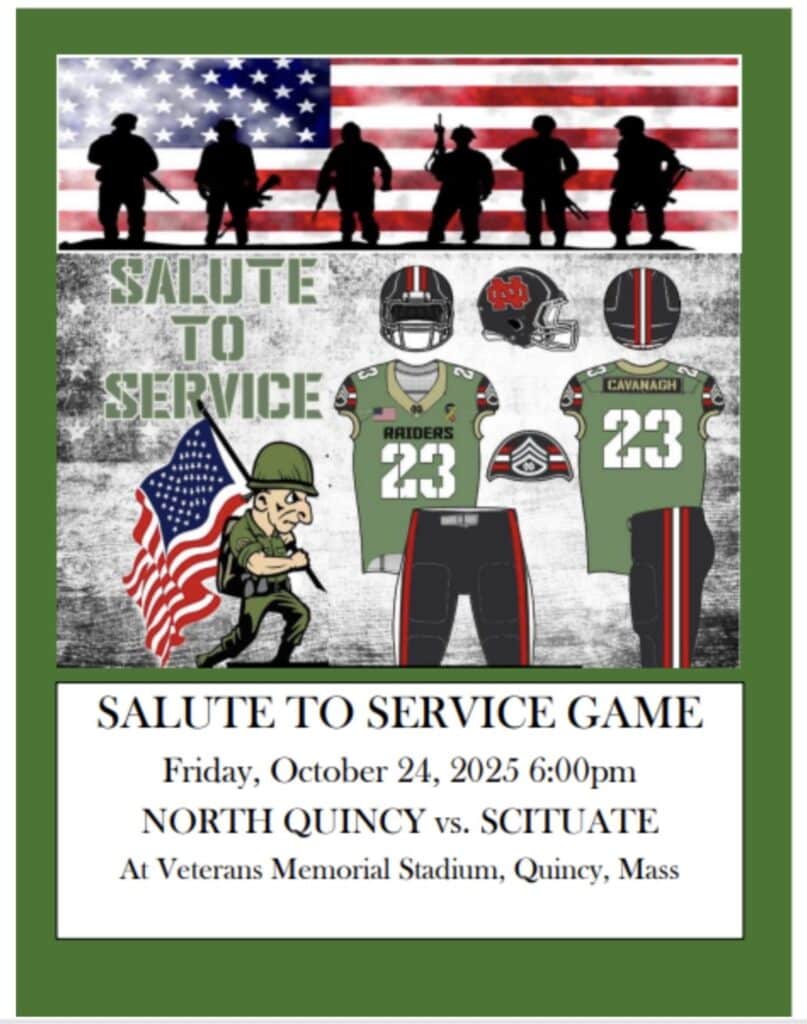 North Quincy Athletics proudly hosted a Salute to Service game at Veterans Memorial Stadium, honoring the men and women who have served our country during a special Friday night matchup against Scituate.