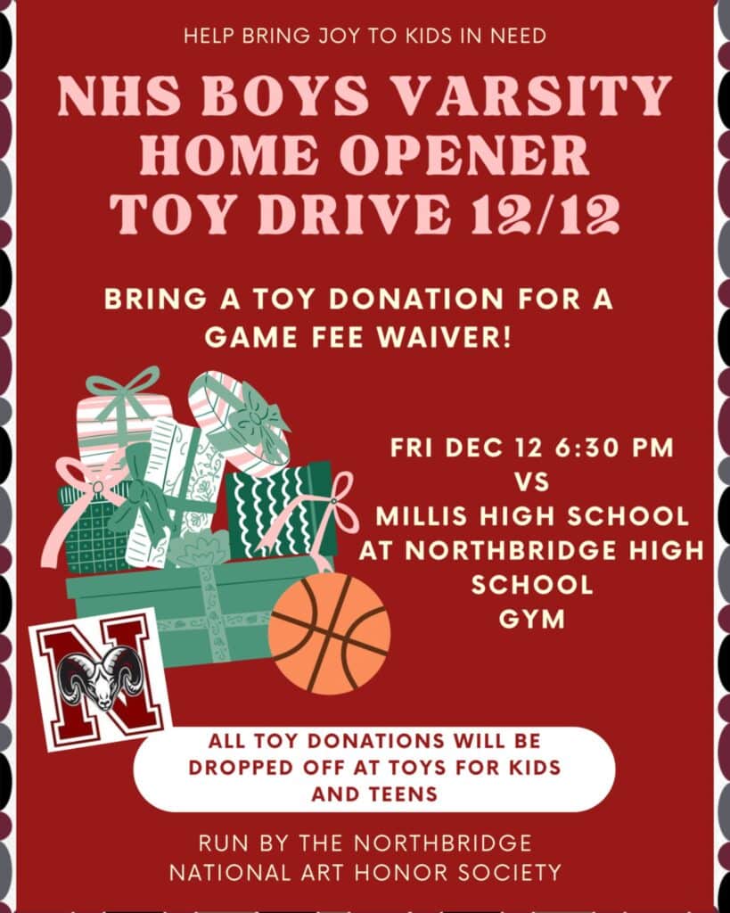 In partnership with the Northbridge National Art Honor Society, the event invited fans to bring a new toy in exchange for free admission to the game against Millis High School at the Northbridge High School Gym. Students from the National Art Honor Society led the effort, managing admissions, collecting donations, and helping coordinate the drive.