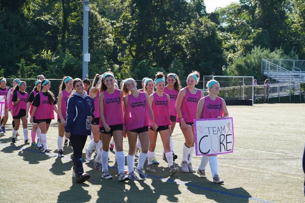 Different teams did different things to raise money. For example, Huntington collected a per goal donation during all games prior to the event. We sold tee shirts and pinnies for the event (a portion of sales were donated) Longstreth Field Hockey Company provided donations of headbands, pink balls, and bracelets for each girl who participated. My team made posters for each team. The girls worked on the event through the month of September. The Play for a Cure tournament lasted from 8am-2pm.