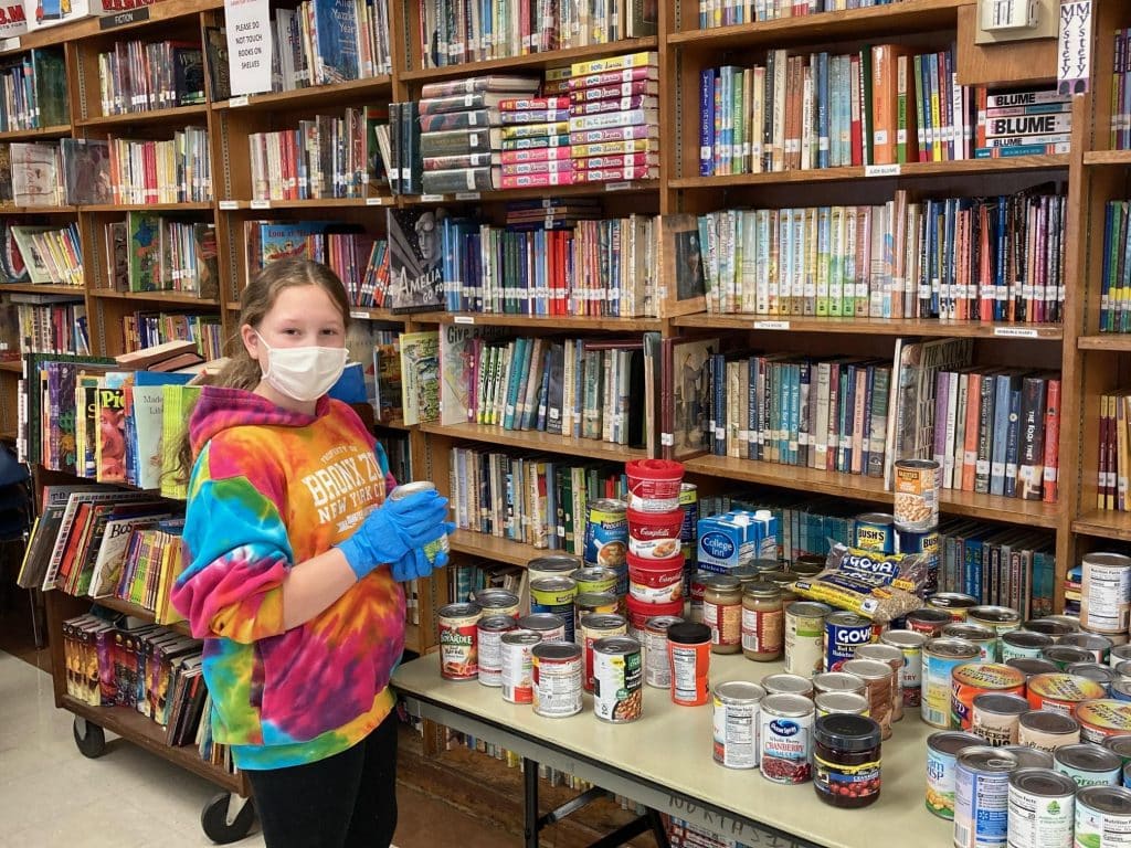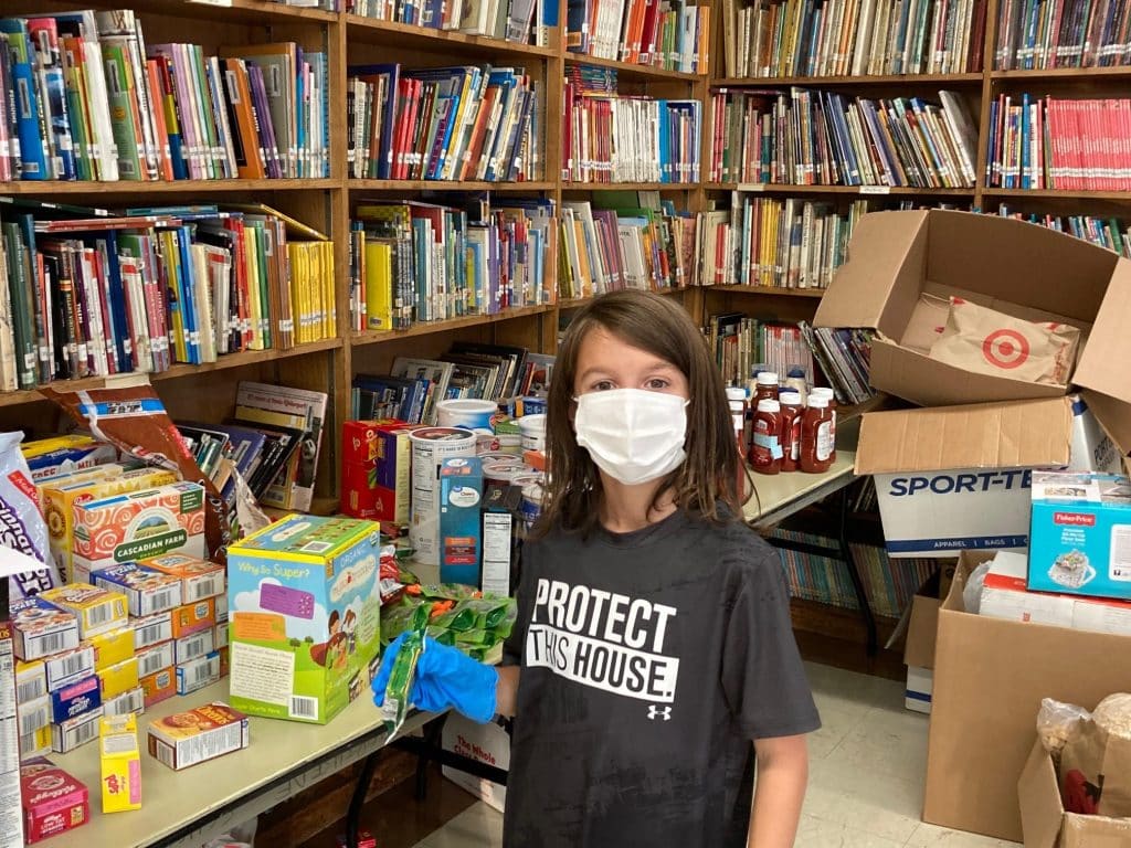 2) Fifth grader Mary Hager helped carefully check the expiration dates on the donations.
