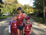 Photo caption: Ms. Edwards with her children celebrating her marathon finish.