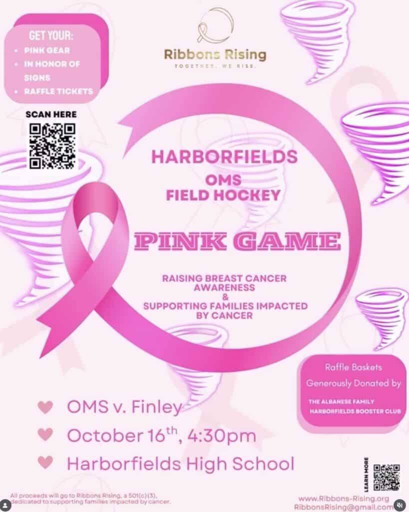 This week, the Oldfield Middle School Field Hockey team continued the momentum with its annual Pink Game, supporting Ribbons Rising, a local nonprofit that provides financial and emotional support to families impacted by cancer. Fans packed the turf in pink, showing that together, we rise.