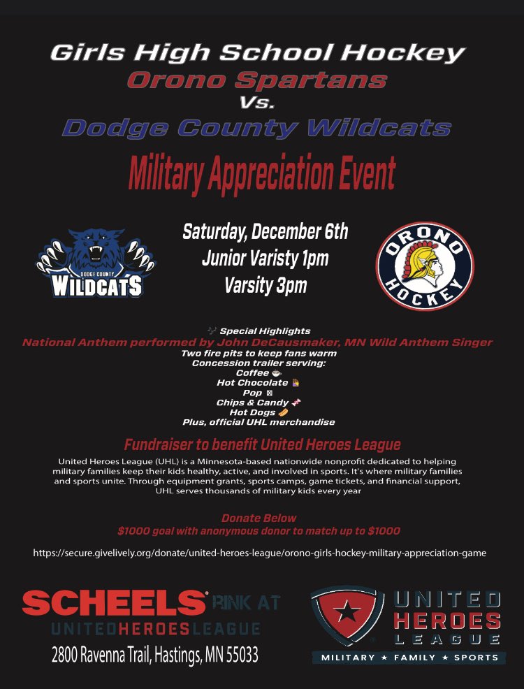 The Orono Spartans Girls High School Hockey team recently showed how athletics can serve as a powerful platform for community connection and meaningful impact by hosting a Military Appreciation Event during their matchup against the Dodge County Wildcats.