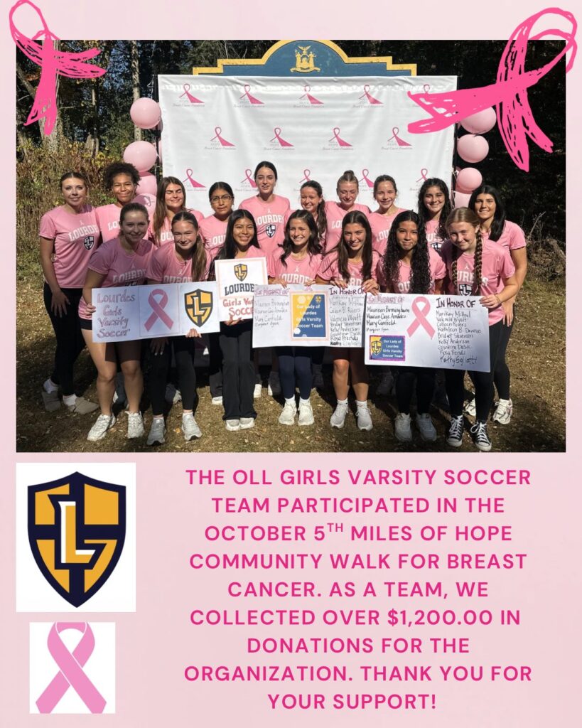 On October 5th, the Our Lady of Lourdes Girls Varsity Soccer team stepped off the field and into the community by participating in the Miles of Hope Community Walk for Breast Cancer.