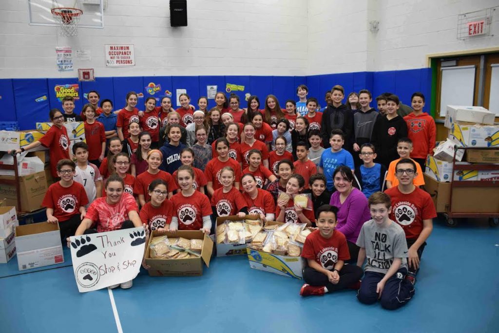 In the beginning of the year, the students were asked to bring in donations for the annual event, including bread, zip-close bags and gloves. Sixth-grader Victoria Rickert presented the flyer to the local Stop and Shop where her grandmother works, asking the store for any donations it could provide. The grocery store donated 200 loaves of bread, 24 cartons of chips and cookies, 84 cases of bottled water and enough cold cuts to foster more than 2,000 sandwiches. Additional donations were provided by local vendors, including hey!cookie bakery in Jericho, which donated more than 700 freshly baked cookies, and Bagel Plaza in Merrick, which provided an assortment of bagels for the cause.