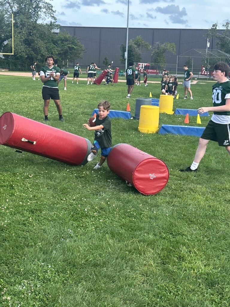 Each year, the varsity players lead a high-energy skills-and-drills clinic for members of the youth program, which includes boys and girls from kindergarten through 6th grade. Both flag football and tackle players participated, learning directly from the athletes they look up to.
