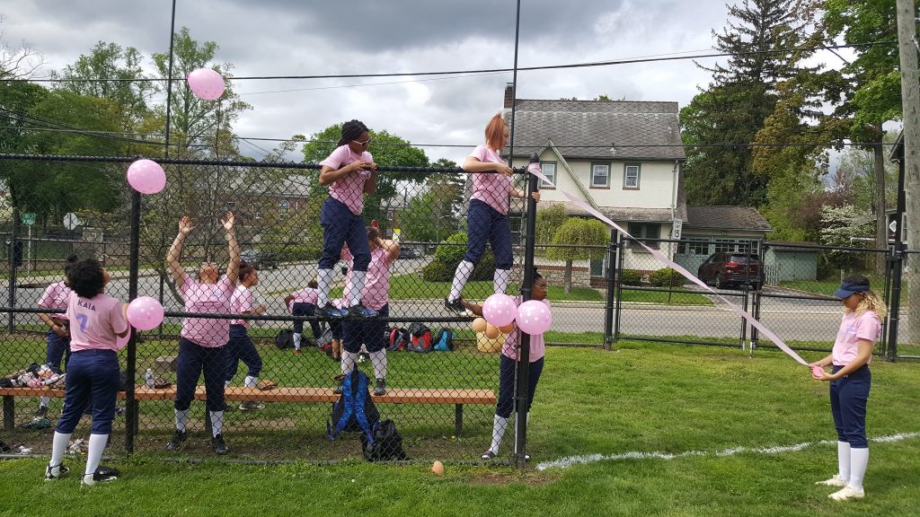 The varsity softball team also participated in Section 1 softball’s Strikeout Breast Cancer fundraiser and awareness campaign. On May 6th, the team “pinked out” the field and their uniforms. Tee Time Shirt Company donated the Pink