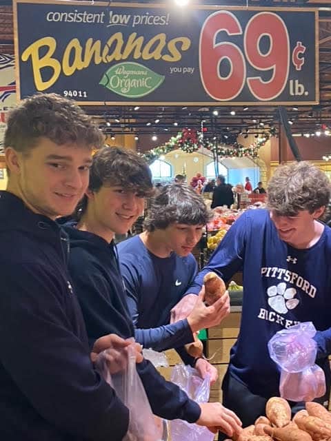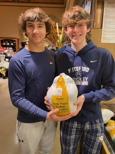 The JV and Varsity Hockey Teams provided Thanksgiving meals and groceries to four families in the city of Rochester.