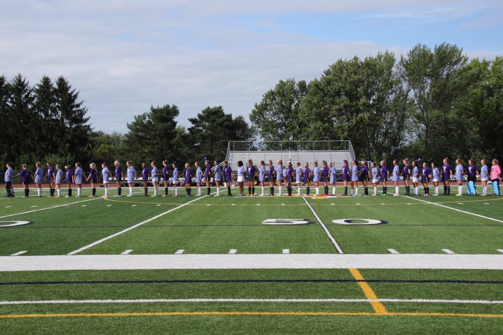 Pittsford Sutherland and Pittsford Mendon JV and Varsity Field Hockey Teams are using our competitive, rivalry games against each other to come together and give back to the community and support the Willow Domestic Violence Center in Rochester.  In August, both Varsity teams participated in the Escalation Workshop through the One Love Foundation where we had players that were trained facilitators from both programs lead the workshop.  Both JV and Varsity teams wore different shades of purple (which is a color worn to bring awareness against domestic violence) during warm-ups and the pre-game ceremony.  Instead of standing as two separate teams, the teams joined together as one team.  Money collected at the JV and Varsity Game in September and then again in October will be donated to the Willow Domestic Violence Center.  $880 was collected at the first game this week.  We will be making one big donation after we play again in October.