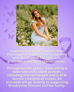 PL Basketball brought its community together for a powerful Coaches vs. Cancer night, turning game night into a meaningful show of support for PL graduate Brooklynne Thorson as she continues her fight against cancer.