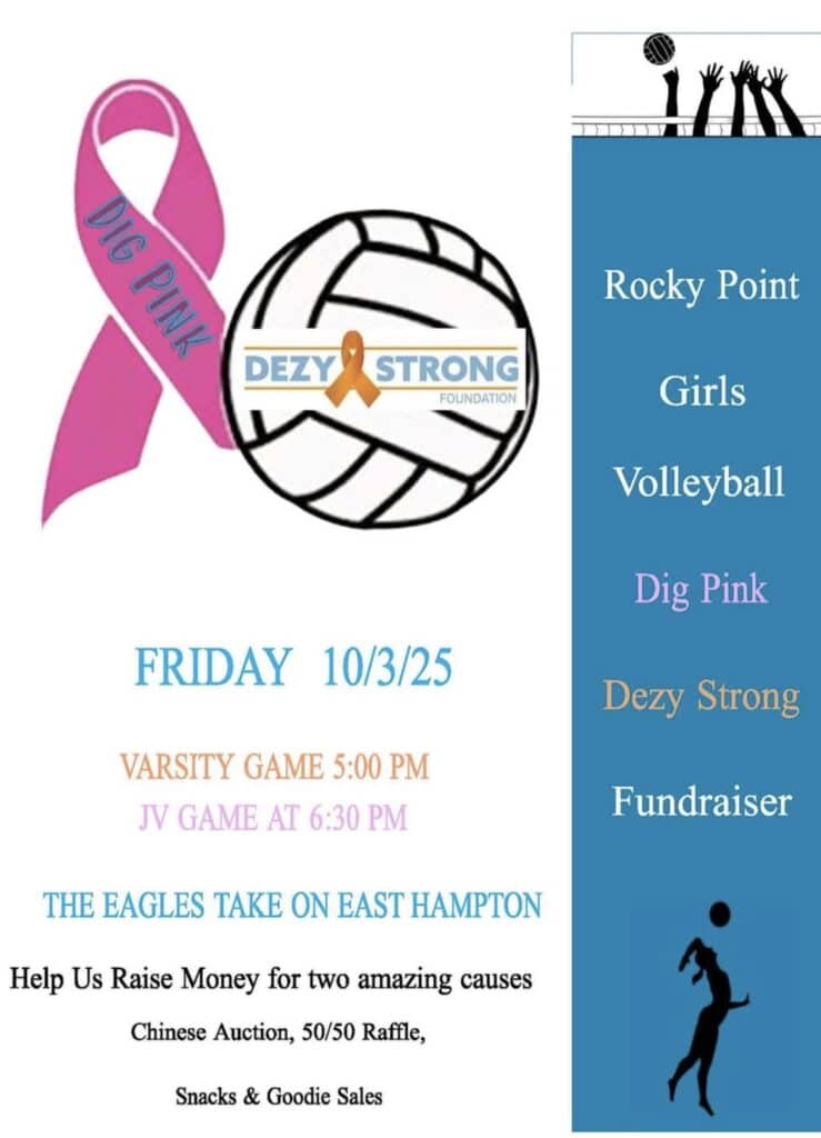 On October 3rd, the Rocky Point Girls Volleyball team came together for an incredible evening of community, competition, and giving back. The team hosted a “Dig Pink” and “Desi Strong” game and fundraiser, raising funds for two amazing causes that make a real difference.