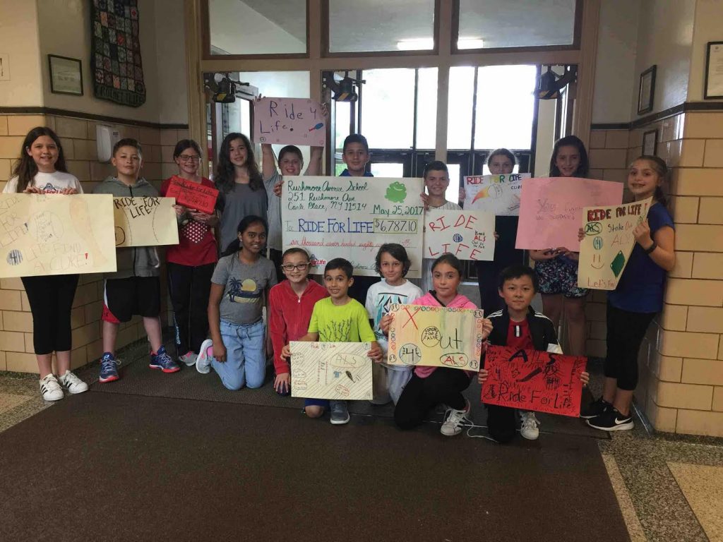 Students and staff members at Rushmore Avenue School in the Carle Place School District helped raise awareness for amyotrophic lateral sclerosis, and offered their support for patients by welcoming a visit from ALS Ride for Life group.