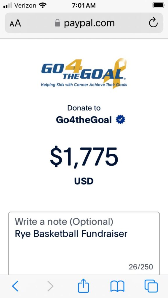 The Rye High School Boys Basketball Team is excited to announce a virtual fundraising challenge in collaboration with Playbook Raise, and we’re seeking your support! Join us on Saturday, January 13, 2024, for our annual Pediatric Cancer fundraiser game, where we’ve partnered with Go4TheGoal to raise funds for children battling cancer and future cancer research.