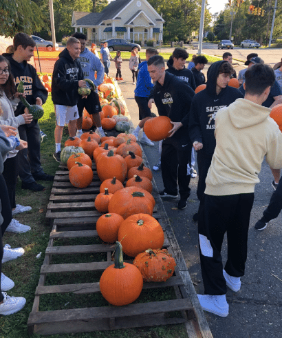 We love when our students get out and volunteer their time in the community. This photo shows student-athletes from Sachem North’s lacrosse program helping unload pumpkins at the church at Five Corners. #WeAreSachem