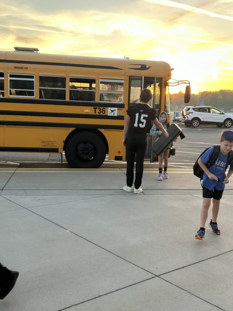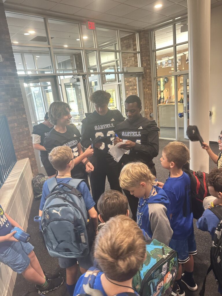 The excitement continued on Friday, October 3rd, as the team visited all three elementary schools in the morning. Wearing their football jerseys, the players welcomed students as they arrived, giving high-fives and spreading school spirit—a gesture that was warmly received by both students and parents.