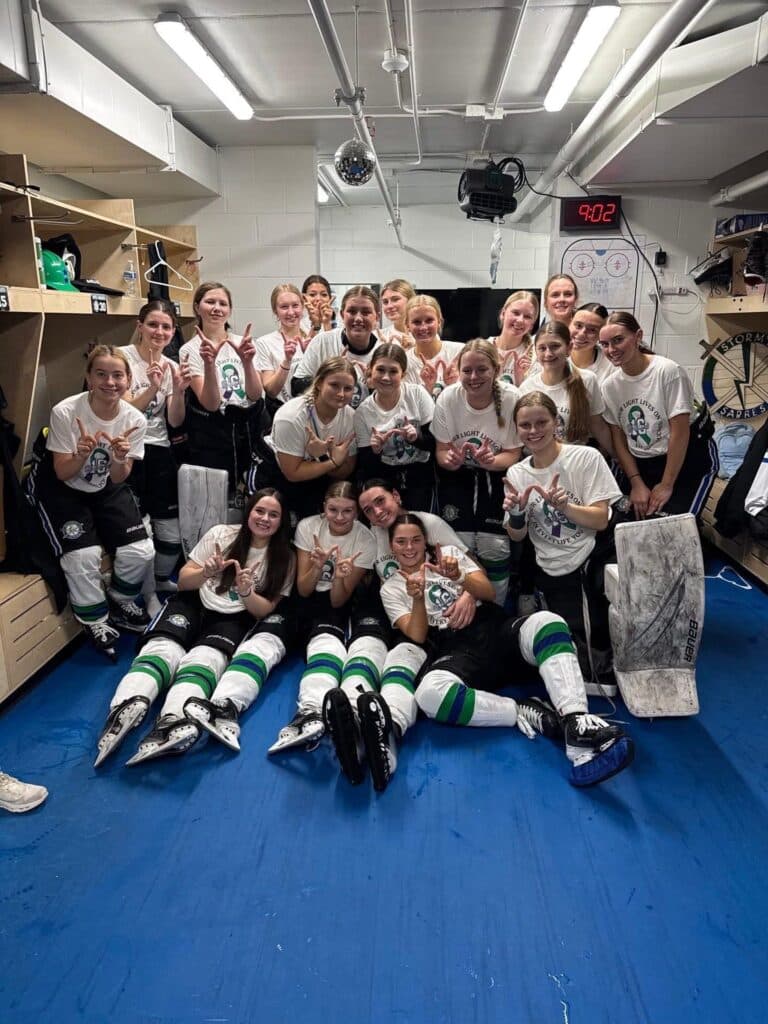 For their Mental Health Awareness Night, Sartell intentionally scheduled their rivalry match against Sauk Rapids to ensure a large crowd and maximize awareness. The game held special meaning for both communities, as Sophie had been part of the Storm N’ Sabres hockey co-op that included athletes from Sartell and Sauk Rapids.