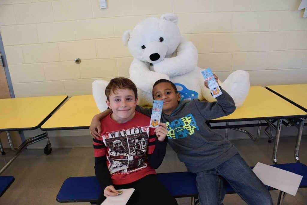 2: Lido students with their “Chill Out and Read” polar bear bookmarks.