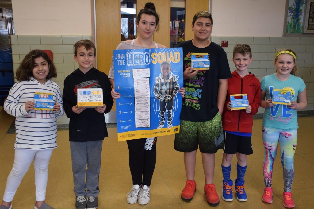 Photo caption: Saw Mill Road Elementary School students, from left, Luna Tejeda, Frank Chiodi, Chiara Merenda, Vincent Galante, Frank Fasano and Caitlin Callahan were among those who contributed to the Pennies for Patients campaign.