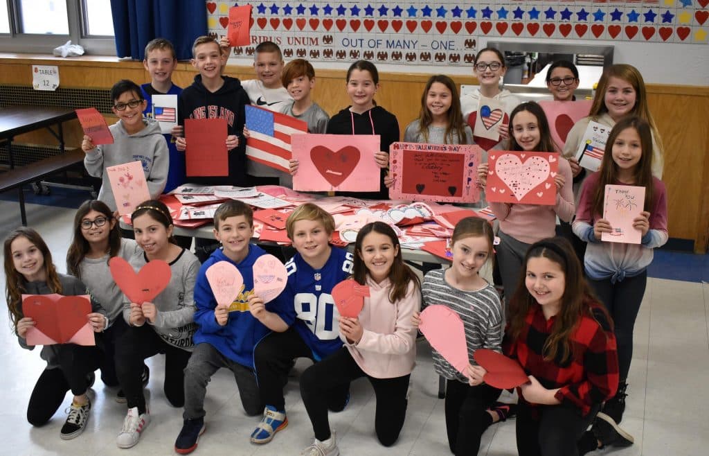 The student council is also sending warm wishes to troops overseas by participating in the Valentine’s for Veterans program. Children in kindergarten through sixth grade made personalized cards for active servicemen and women. The hundreds of cards made by Saw Mill students will go to Nassau County Legislator Tom McKevitt’s office to be sent to the troops in time for Valentine’s Day.