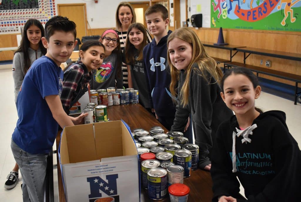 1: Sixth grade members of Saw Mill Road Elementary School’s student council sorted donations for its annual “Souper Bowl” canned food drive.